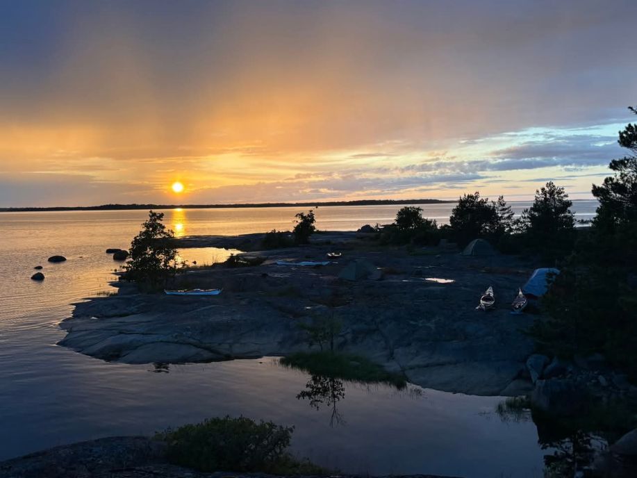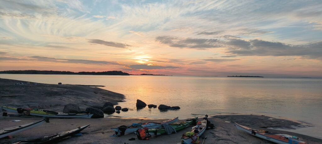 Reissu tarjosi kaiken, mitä toivoimme – ja vielä vähän enemmän: retkeilyn iloa ja haasteita, luonnon kauneutta, nauruntäytteisiä iltoja sekä yhteisen innostuksen tutkia uutta, joka kuitenkin tuntui yllättävän tutulta. Näimme upeita maisemia, kauniita saaria, telttailimme silokalliolla, uimme, nautimme gourmet-ruokaa trangialla, kävimme iltakävelyllä ja harrastimme viinijoogaa. Lisäksi bongasimme merikotkia, joutsenia, haikaran ja pilkkasiipiä.