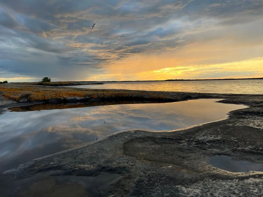 Ensimmäinen melontapäivä vei meidät suoraan retken pääkohtaan: Väderskäriin. Vastassa oli ristiriitainen näky: kuvausten aikaiset rakennukset ja pihapiiri olivat rapistuneet pahasti. Mutta maisemat – ne olivat juuri sellaiset kuin olimme kuvitelleet. Avara horisontti ja kivikkoinen ranta kertoivat yhä tarinaa elämästä, jossa meri ei ole maisema vaan elinehto. Lähtöhetkellä kohtasimme hiljaisen, koskettavan näkymän: kivellä makasi kuollut joutsen. Sen puoliso uiskenteli lähistöllä itkien yksin jäämistään. Saari muistutti, ettei se ole vain kulissi, vaan osa elävää luontoa.